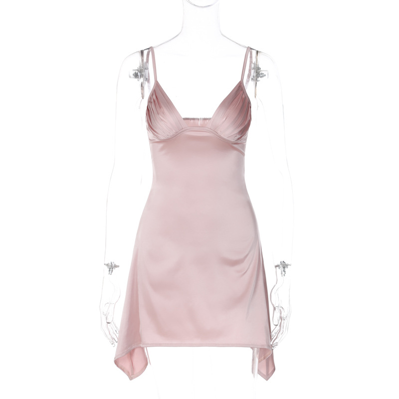 Ahagaga Fashion Elegant Slim Satin Dress Sexy Deep V-neck Hollow-out Bandeau Sling Backless Skirt Women